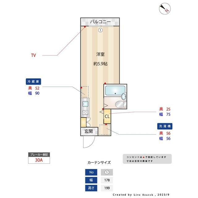 | 間取り | ワンルーム(洋5.9) | 主要採光面 | 西 |